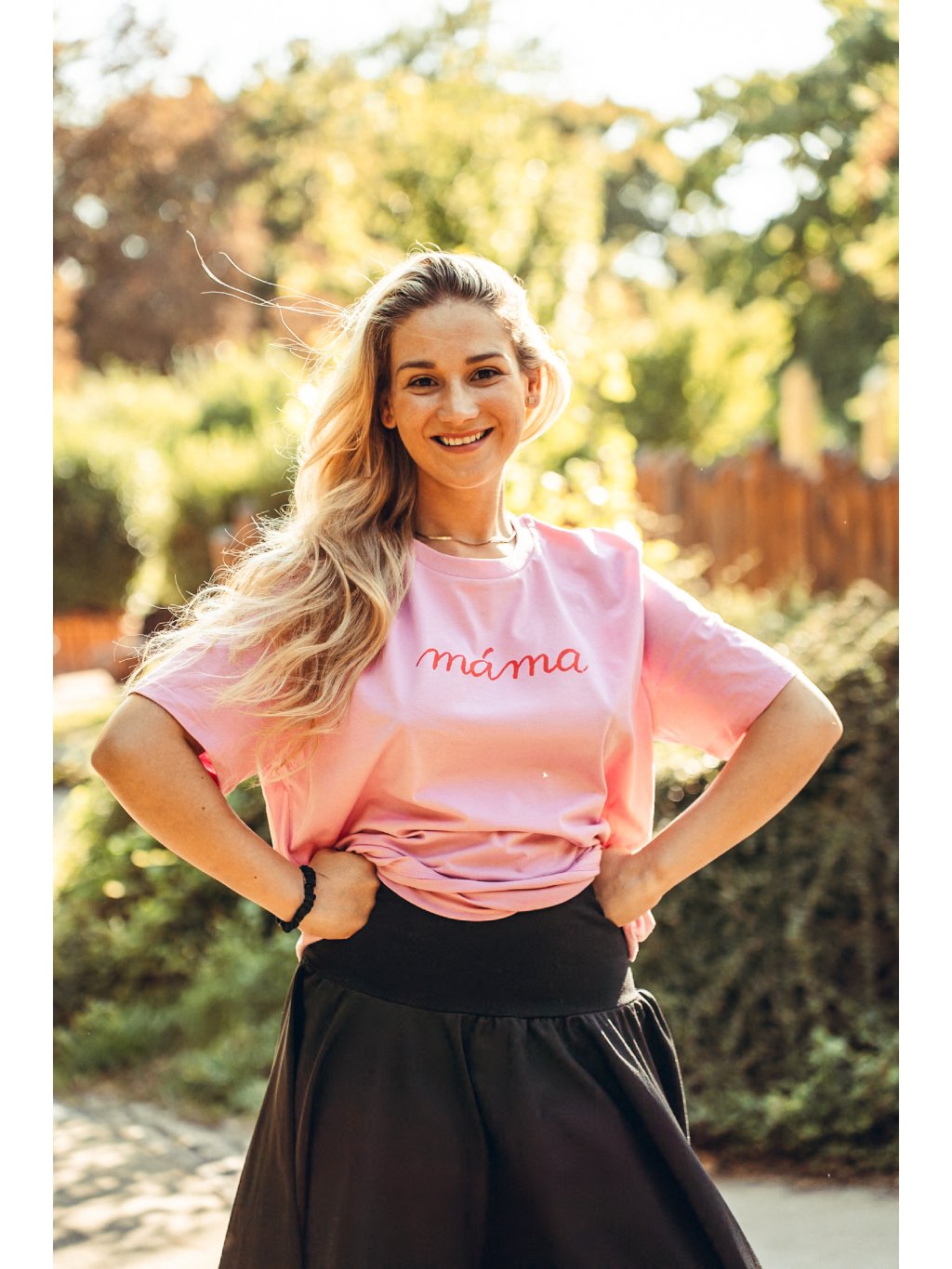 Tričko má volný střih, to aby se v něm dobře cítily i maminky po porodu.